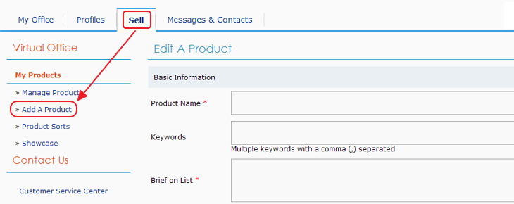 1. Click [ Sell ] > [ Add A Product ] to enter: